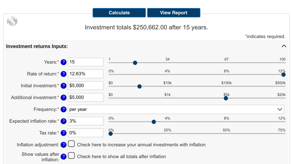 Spoiler alert: investing 5k a year for the last decade and a half would have bagged you a big wad of green.