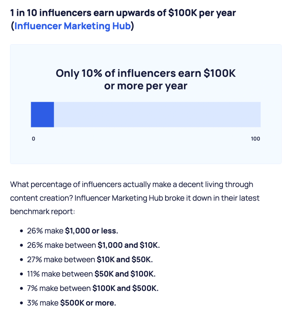 89% of Creators make less than the average $48000 salary in America.