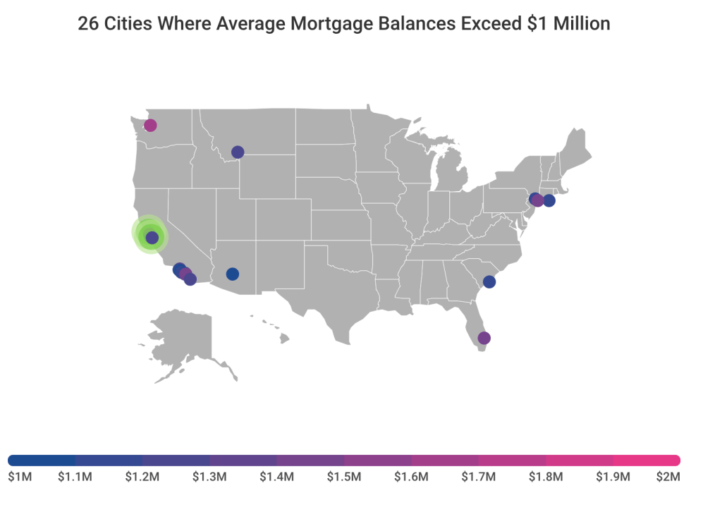 I found this diagram on Experian that shows how average mortgages have ballooned in California and New York.