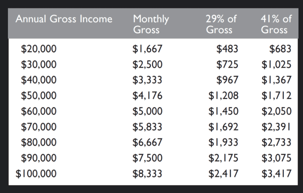 Run the numbers. You get mortgage costs equal to 72% of income.